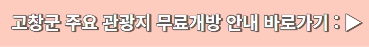 2023년은 고창 방문의 해로 고창시에서 이를 기념하기 위해서 고창읍성, 고인돌박물관, 선운사등 고창시의 여러 관광지의 입장료를 무료로 개방한 다 고하니 자세한 정보는 아래 홈페이지를 통해 확인하실 수 있습니다.